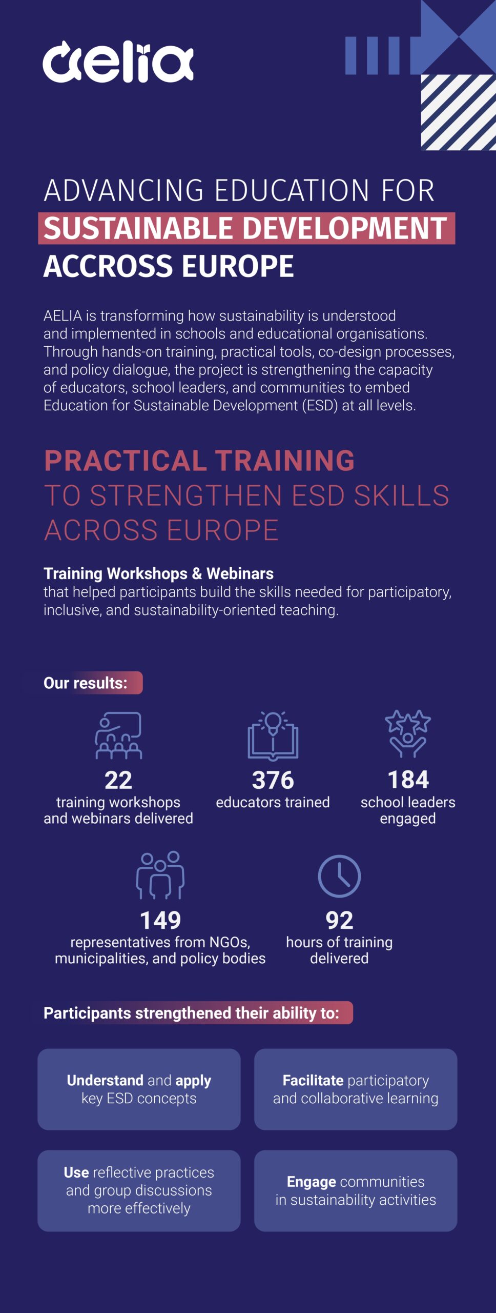 The AELIA project seeks to contribute to equipping all citizens with the skills and competencies for the green transition. Our approach involves a comprehensive, multistakeholder strategy that brings together actors from formal and non-formal education settings, businesses, civil society, and the public sector.