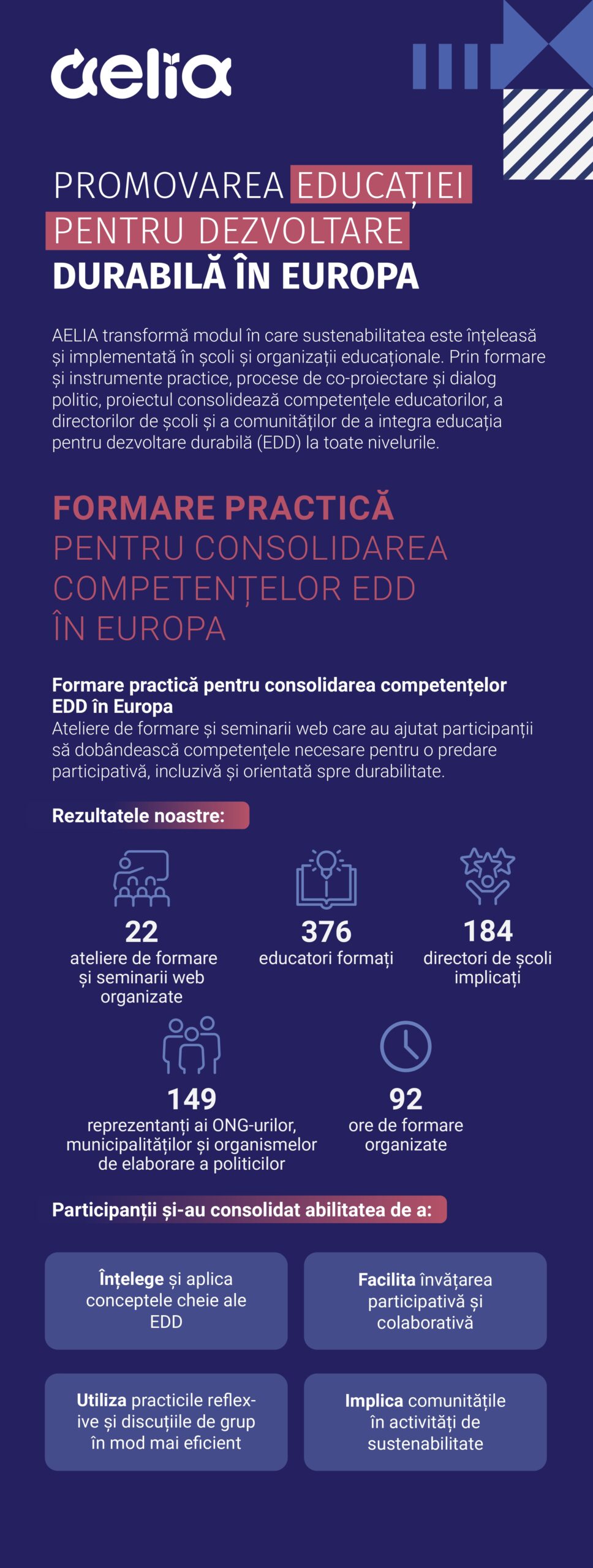 - Consolidarea și o mai bună promovare a educației pentru dezvoltare durabilă.